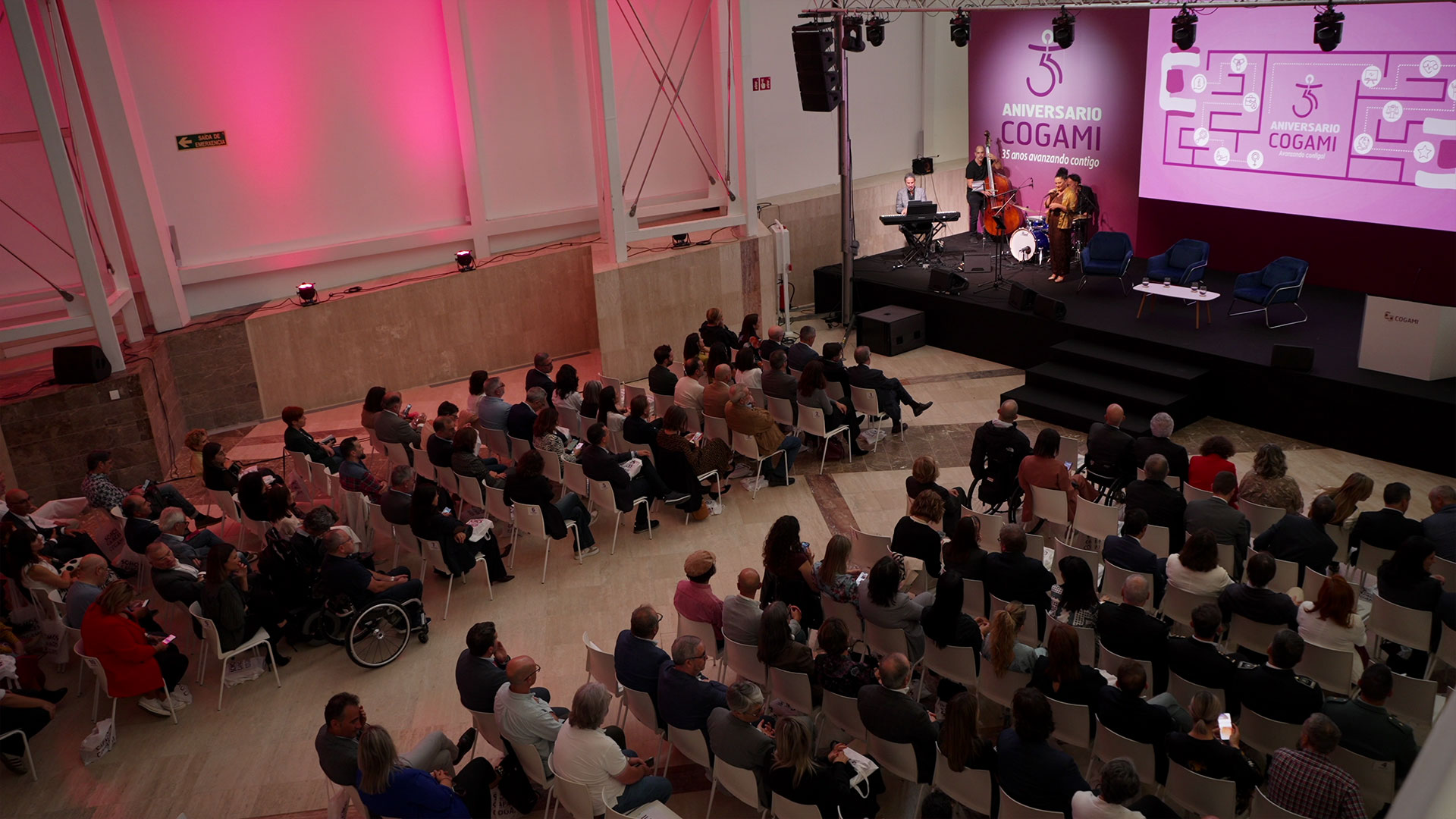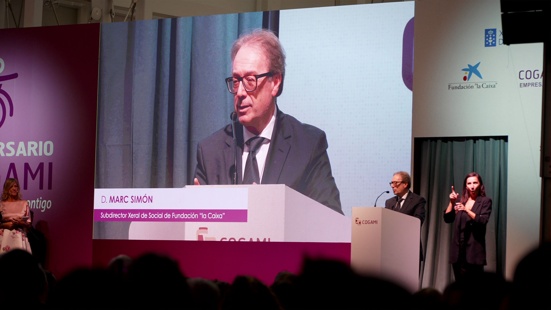 COGAMI, la organización gallega que defiende y promueve los derechos de las personas con discapacidad, celebró sus 35 años con una gala en la Ciudad de la Cultura de Galicia. El acto, conducido por el humorista Roberto Vilar, y la locutora de Radio Voz, Eva Millán, contó con una asistencia de casi 1000 personas procedentes de toda Galicia.